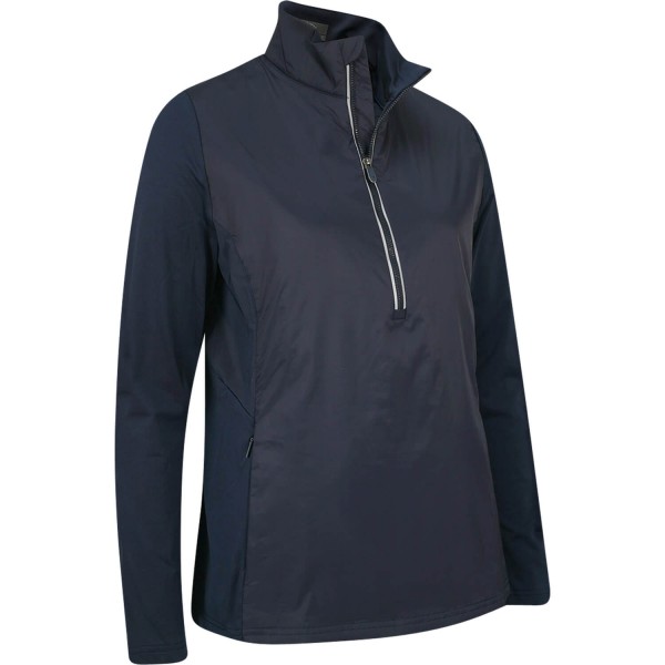 Layer für Damen Callaway Insulated Mixed Media 1/4-Zip Eigenschaften atmungsaktiv weich elastisch Verschluss 1/4-Zip Passform Regular Fit Kragen Stehkragen Taschen ja, zwei Reißverschlusstaschen Details Classic Look Material 100 % Nylon