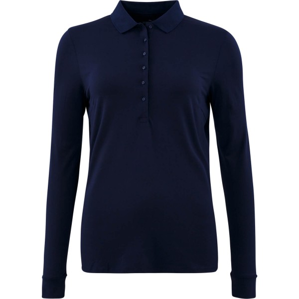 Poloshirt für Damen Puma Cloudspun, langarm Eigenschaften atmungsaktiv feuchtigkeitsableitend elastisch weich Knopfleiste 6er-Knopfleiste Passform Regular Fit Details Basic-Look extra lange Knopfleiste Kragen in Rippenoptik mit kontrastfarbenem Streifen kleines Puma Cat-Logo vorne links über dem Saum Material 97 % Polyester, 3 % Elasthan