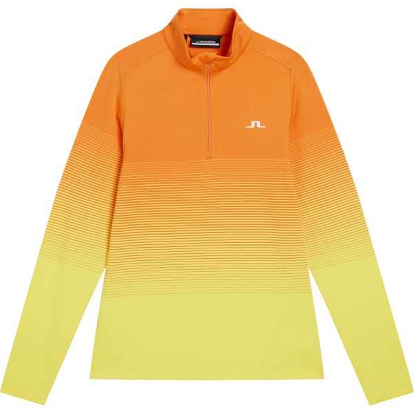 Layer für Herren J. Lindeberg Luis Half-Zip Mid Eigenschaften elastisch feuchtigkeitsableitend Reißverschluss ja, bis zur Brust Passform Regular Fit Kragen leichter Stehkragen Details J. Lindeberg-Logo auf der Brust und hinten am Kragen Reißverschluss mit Kinnschutz gestreiftes Design Material 89 % Polyester, 11 % Spandex