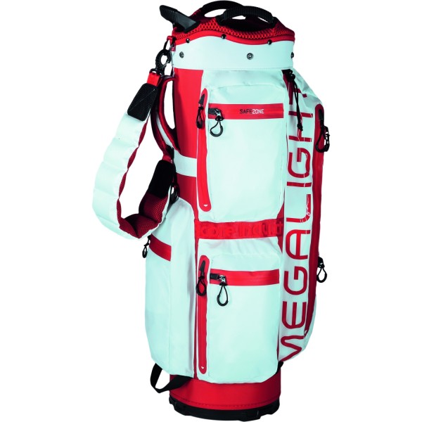 Cartbag Score Industries MG111 Das Cartbag MG111 von Score Industries gehört zur Megalight Serie und bringt ein entsprechend geringes Gewicht auf die Waage. Im großzügigen, vierfach unterteilten Top mit durchgehenden Fächern können alle Schläger bequem verstaut werden. In insgesamt 13 Reißverschlussfächern mit versiegelten Reißverschlüssen findet die gesamte Ausrüstung Platz, die mit auf die Runde soll. Die clevere Aufteilung erlaubt, für jede Equipmentgruppe sowie den Akku vom Trolley ein eigenes Fach zu verwenden. So bleibt die Übersicht zu jeder Zeit gewahrt. Ein Regenschirmhalter, zwei Klettpatches für Handschuhe sowie ein Karabinerhaken, an dem sich beispielsweise Handtücher befestigen lassen, runden die Ausstattung ab. Der drehbare und mittels Karabinerhaken schnell abnehmbare Schultergurt ist weich gepolstert und verspricht abseits des Trolleys angenehmen Tragekomfort. Drei Griffe am Top, einer auf der Unterseite sowie eine Griffschlaufe im unteren Bereich sorgen dafür, dass sich das Bag komfortabel transportieren lässt. Inklusive Regenhaube. Bag Höhe 89 cm Top Durchmesser 24 cm Gewicht 2 kg Wasserdicht wasserabweisend Anzahl der Fächer 4 Fächer durchgehend ja Kühlfach nein Tragegurt ja Regenschirmhalterung ja Putter-Röhre (extern) nein